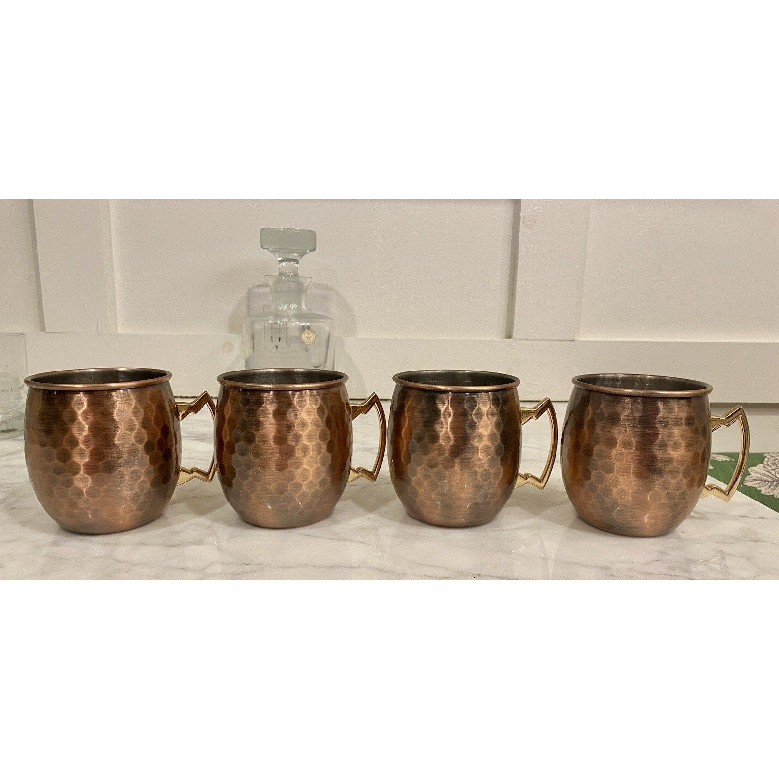 4 ECO-ONE Moscow Mule hammered copper mugs brass handle by Silver One In't
