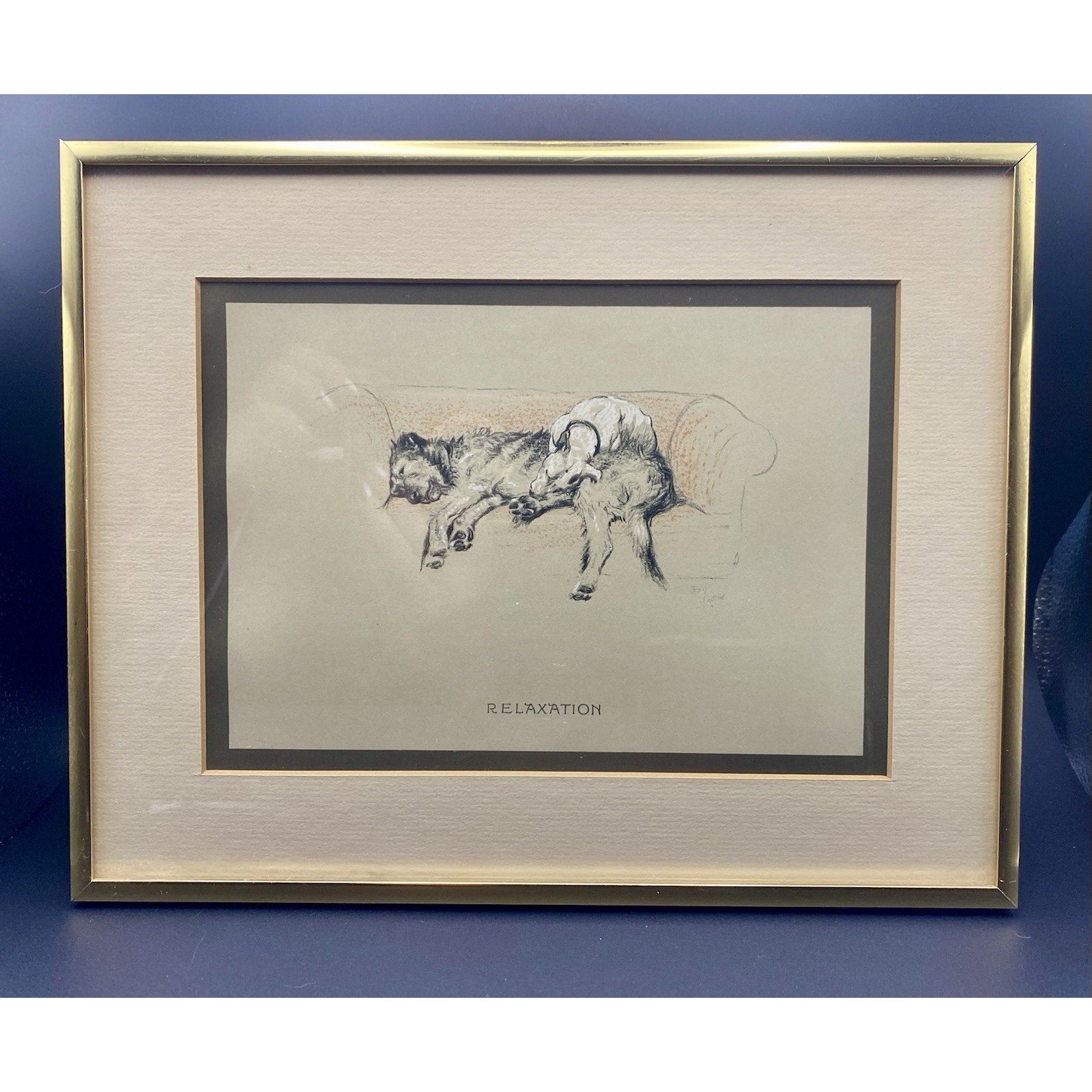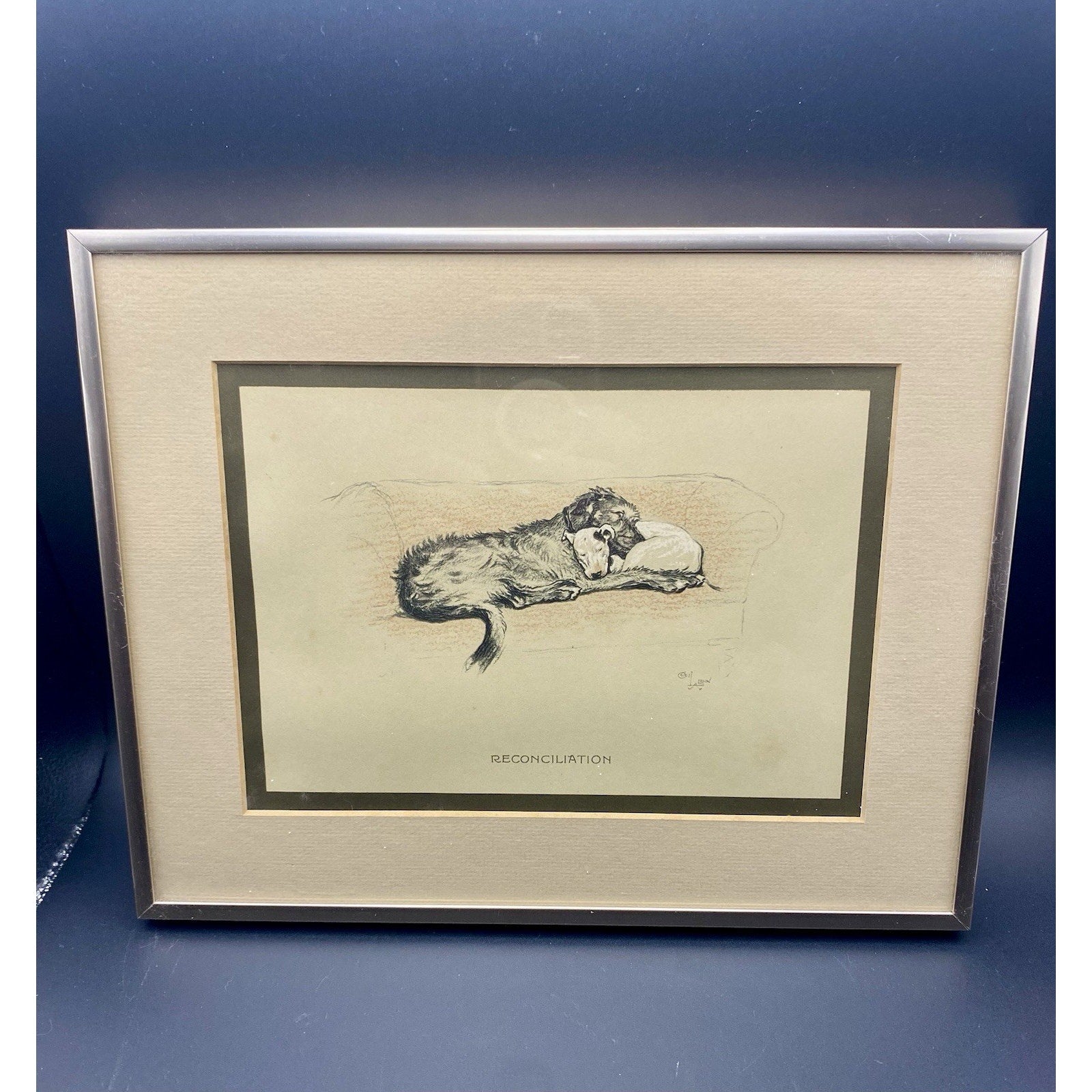 Cecil Aldin Print 1929 Bull Terrier w Wolfhound Approbation Matted Print