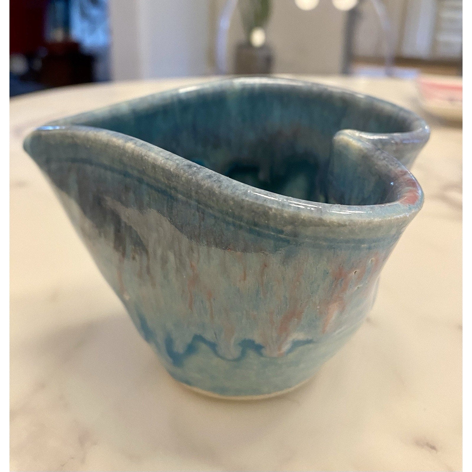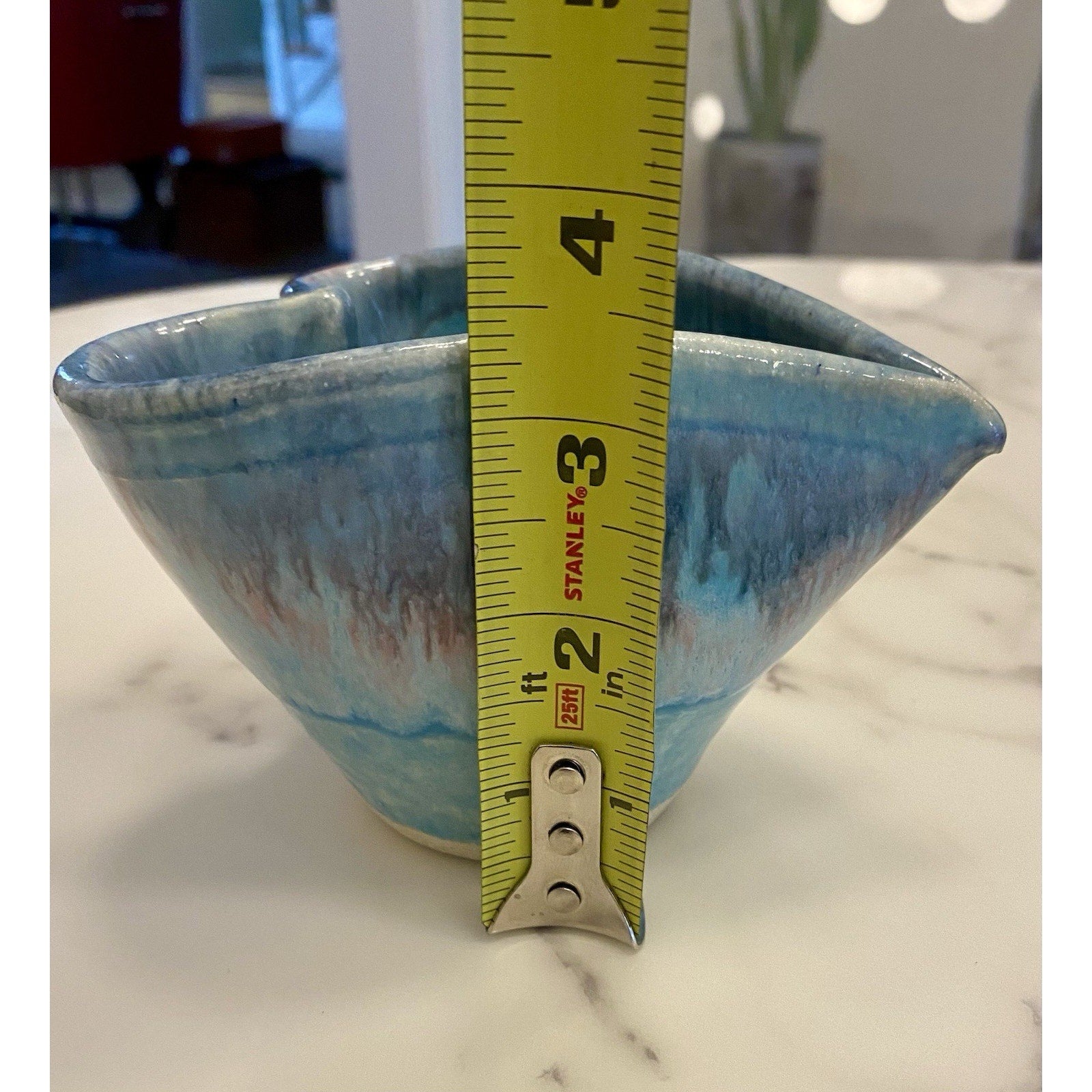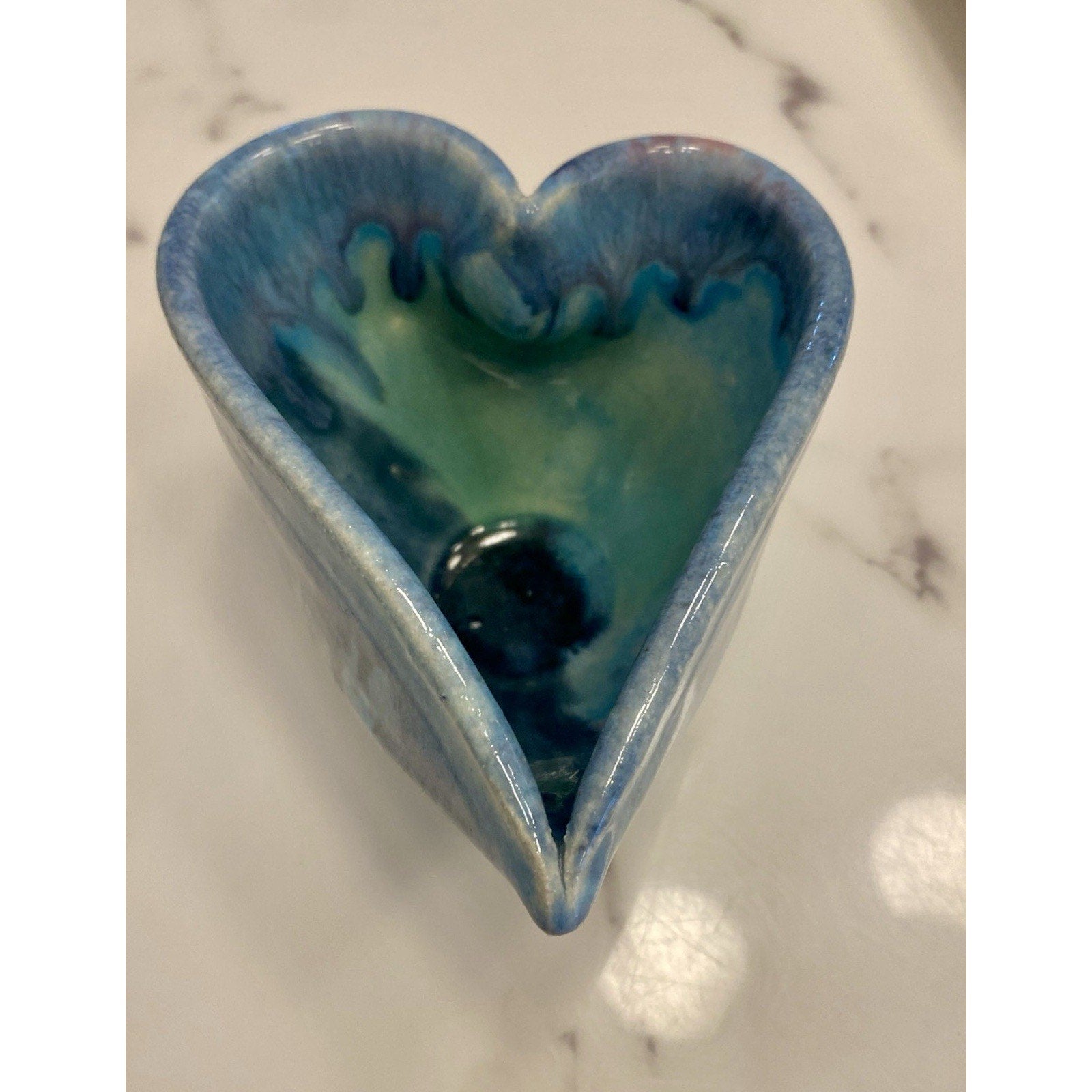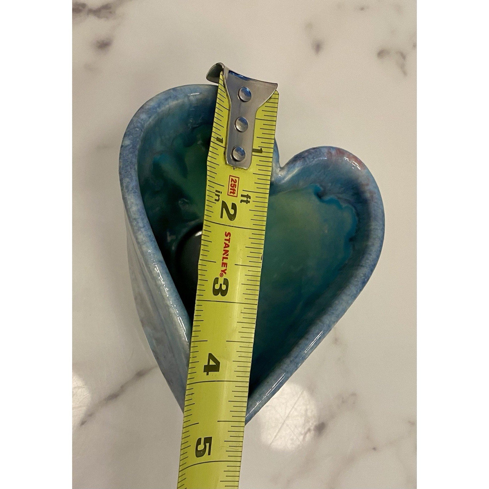 This Lisa Howe signed art pottery valentine heart shaped dish is a unique and handmade piece from America. The glossy finish and blue color add to its beautiful aesthetic, perfect for adding a touch of love to any space. Crafted with care and attention to detail, this original creation is sure to bring joy to those who appreciate art pottery.